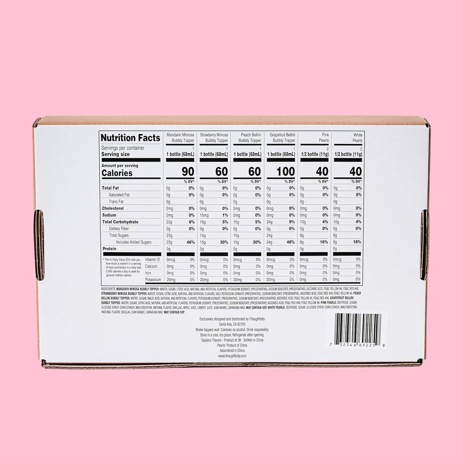 4 FRUITY FLAVORS – Includes Mandarin, Strawberry, Peach, and Grapefruit bubbly toppers, each in a 2.3 fl oz bottle for mixing delicious drinks.