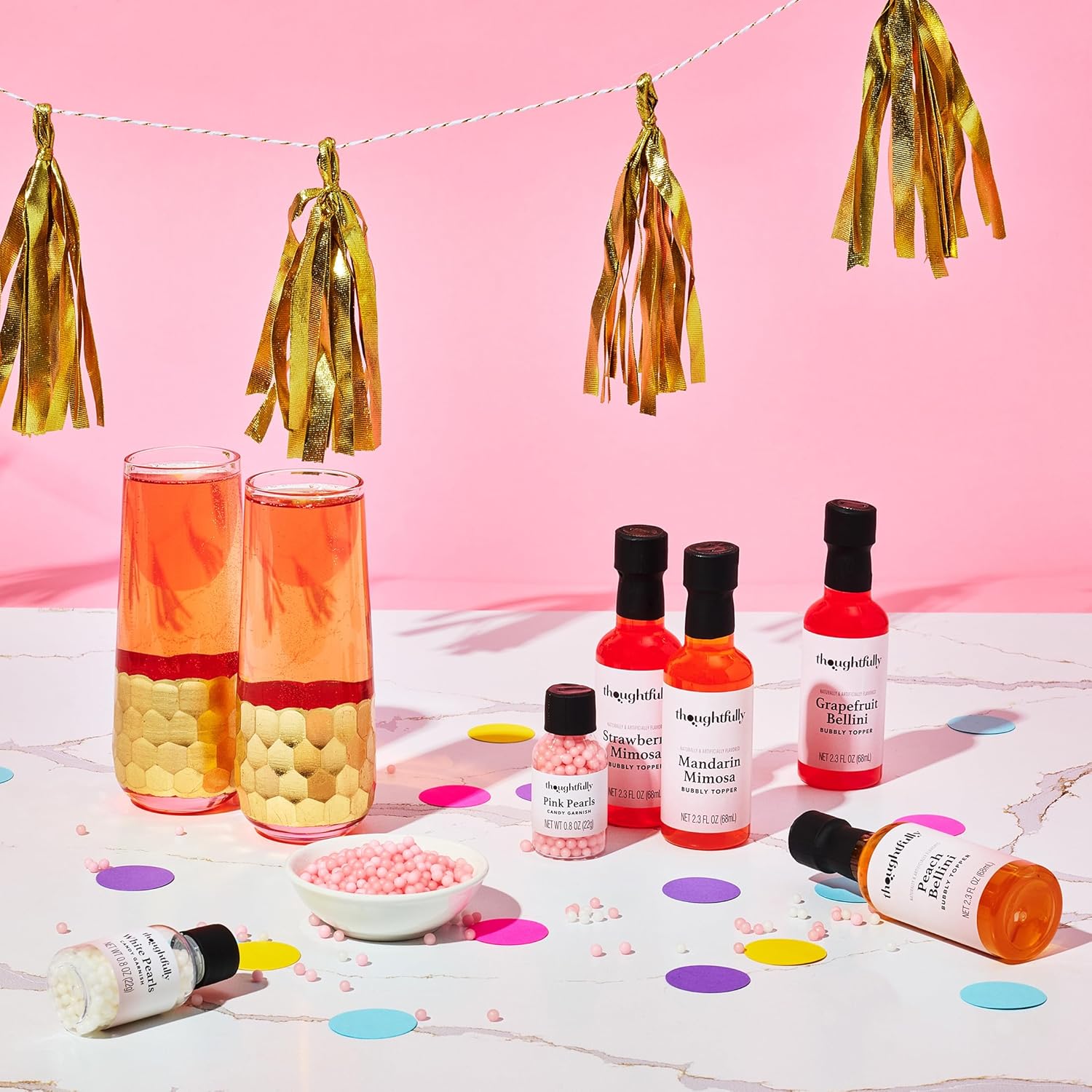 PEARL GARNISHES INCLUDED – Add sparkle to your drinks with edible Pink Pearls (0.8 oz) and White Pearls (0.8 oz), a playful touch for celebrations.