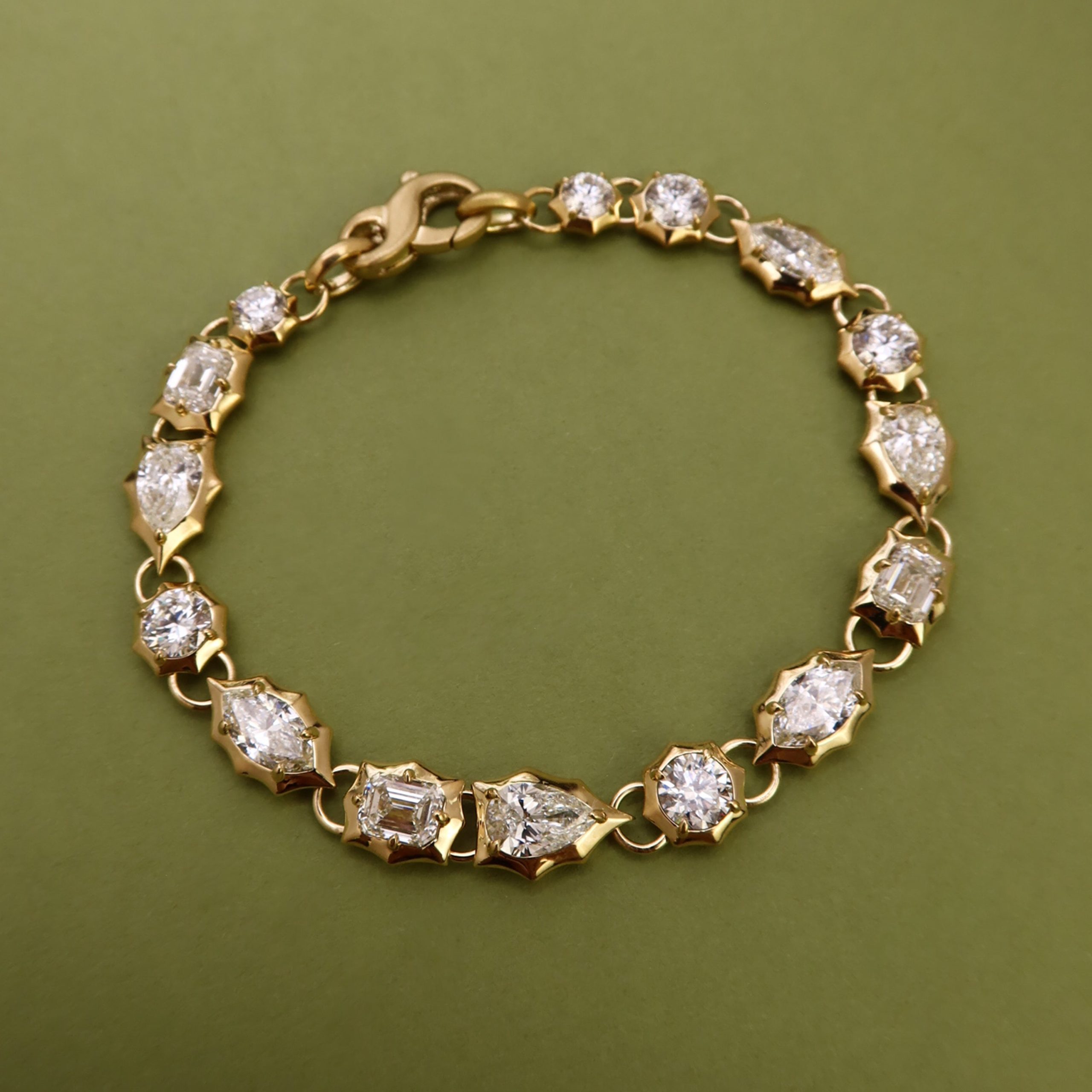 Inspired by our Envoy and Vanguard eternity bracelets, this Limited Edition Alchemy Eternity Bracelet brings bold diamond focus to your stack. Handcrafted in 18-karat gold and featuring 6.50tcw and with 15 varied stone shapes, the Alchemy Eternity Bracelet is our take on a classic line bracelet.