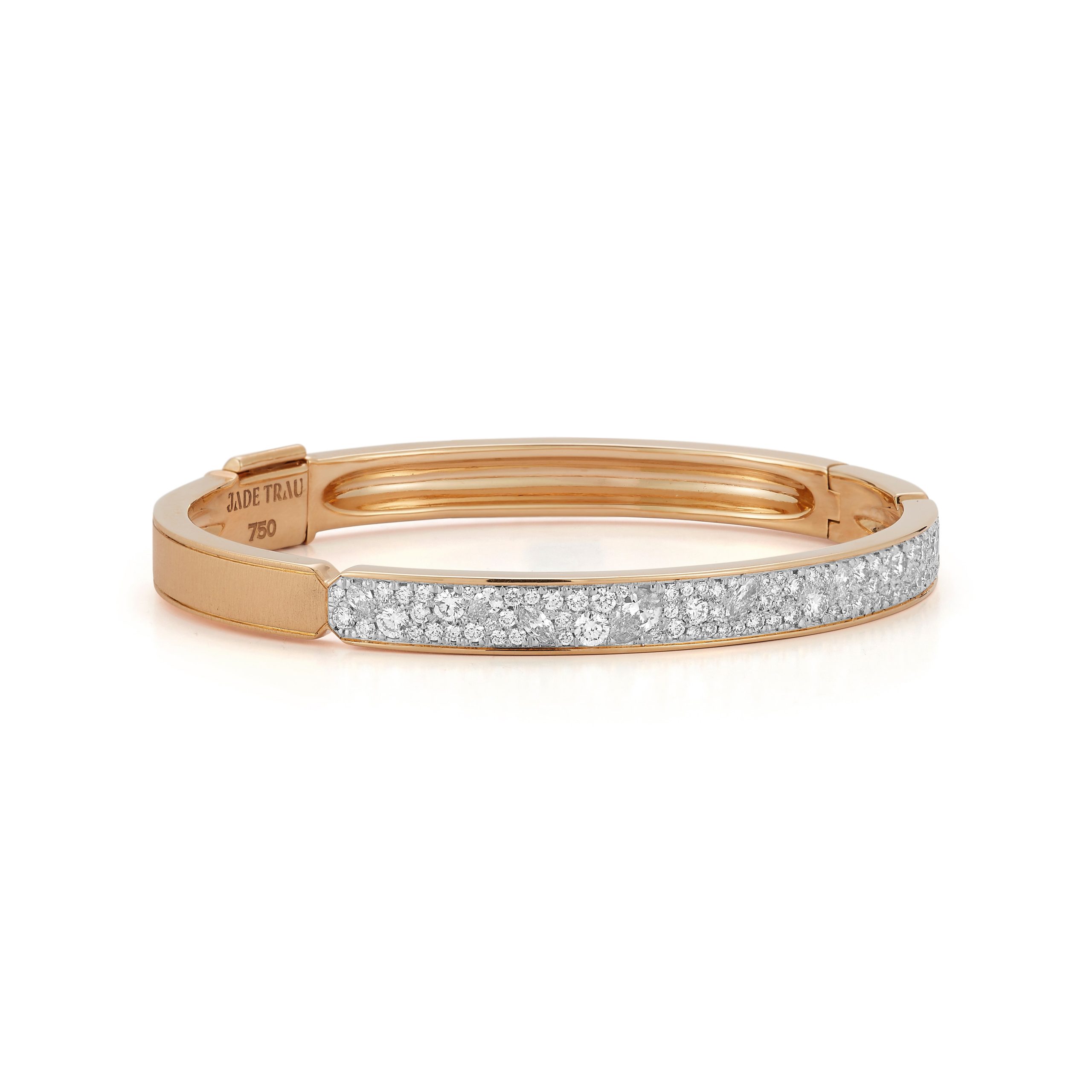 A new take on the classic bangle style, the Billie Bangle takes elements from our signature Billie design and reimagines them a completely new before seen way. It’s heavy and solid silhouette is handcrafted in 18-karat gold and features 1.72tcw of our new mixed shaped cobbletsone pave using round, pear, and marquise diamonds.
